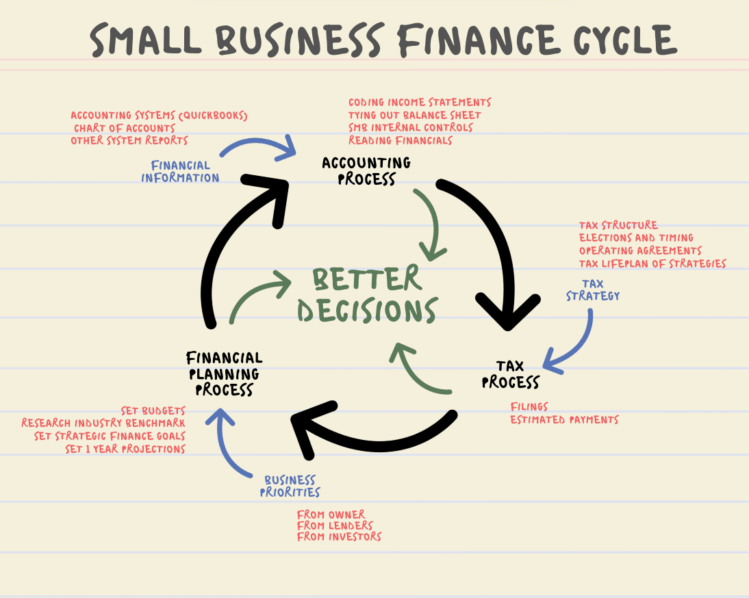 SMB Finance CycleAt a high level, finance at every size of company looks like this: Accounting feeds Tax which feeds Financial Planning which drives Accounting, and it goes on. 🔄 Without good accounting, tax is impossible to do. Losses can swing into income, making tax outflows impossible to predict. And without predictable cash outflows, good luck budgeting and forecasting into the future. 🤷♂️ And this lack of forecasting makes the business reactionary, which only delays the accounting team in getting you good financials. It's a SMB death spiral. 🌀 But done right, the opposite is true. A faster and more accurate accounting team makes taxes easier which allows for a better forecast, better investment decisions, and a more proactive approach to business. 🏎️ Now, if it were that easy, everyone would be making money and finance would be easy. But they're not - and it isn't. There are outside factors that impact each component above. The Outside VariablesThese outside influences are where a lot of the problems can stem from - either they're set up incorrectly or missing entirely. At large businesses, these are table stakes. ♣️ But that concept does not exist in SMB and start-up world - nothing can be taken for granted. Here are the outside variables on the core finance function: The accounting process will only be as good as the information that is fed into it. 📥 The tax process will only be as efficient as it's set up to be and adjusted for over time. 🛖 And the financial planning process can only be as good as the priorities that are fed into it from the owner. If an owner is unclear on any of these variables, the core finance function will suffer. 🔍 For the majority of SMBs, this will mean getting outside help. But it's never a set-it-and-forget-it solution. Outside advisors can never care more about your finance function than you can - because it impacts the quality of decisions you make. Okay. Last layer to add. What are the inputs to these outside variables and core processes that make up their impact on the finance function? The Inputs to the VariablesHere is my take based on personal experience running a small business and working with thousands of them: The most likely culprit for a breakdown in the finance process are any number of these items in red. ❗ A badly set up accounting system can either delay or render useless the financials that owners need. 📆 And owners need to ensure a base level of controls in that process to know they can step away from granular finance processes without being robbed blind. Tax help is hard to come by - but owners need more than just filings completed. They need the other bits of tax strategy and non-financial tax discussions that come with running a business. Once these are buttoned up, they have to be able to share clear goals and objectives and layer those into the finance process to be proactive. 👨🏫 The TakeawayYou can't delegate anything in this cycle 100% - not until you're out of the game entirely. These core functions, variables, and factors drive better decisions for yourself, investors, employees, and the business as a whole. CEOs have to make hard capital allocation decisions every day - missing core parts of this process is playing on hard mode. 🫡 🔥 Hottest Finance Posts This Week 🔥